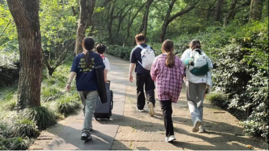 学生徒步前往宁波保国寺
